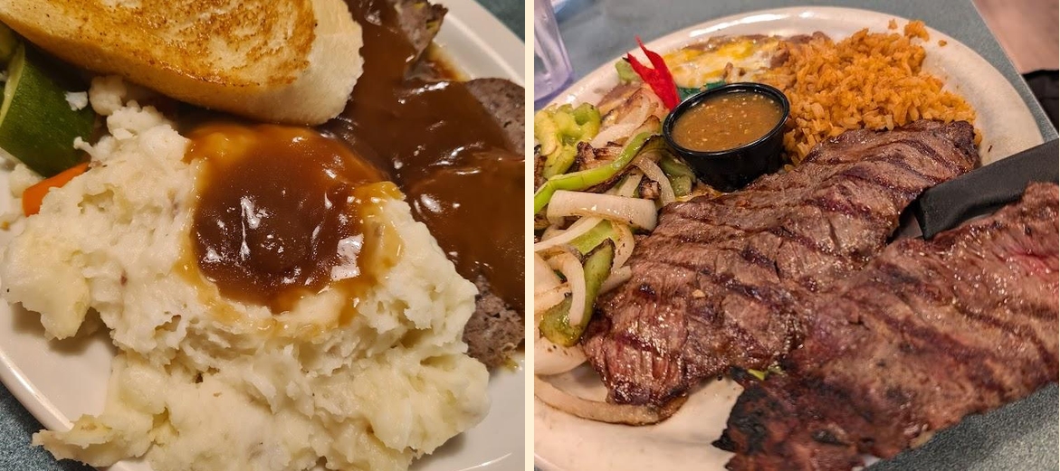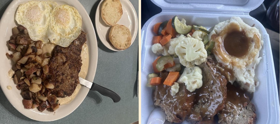 Start with the Cowboy Breakfast for an energizing morning. For lunch or dinner, the Steak & Shrimp is a crowd-pleaser. Don't forget to indulge in their excellent desserts.
